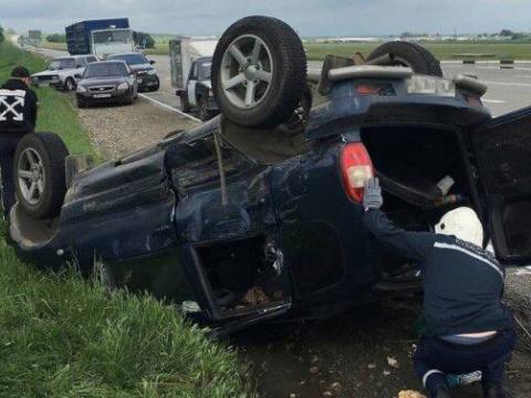 Сообщается, что неподалеку от поворота в поселок Урупский 26-летний водитель грузовика на нерегулируемом перекрестке неравнозначных дорог не предоставил преимущество в движении автомобилю «Шевроле Нива», в котором ехала семья с детьми, и столкнулся с ним. От удара отечественный внедорожник перевернулся на крышу.